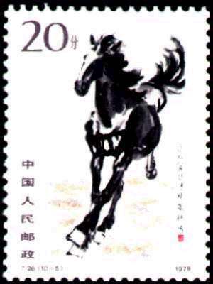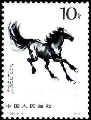 The whole set of 10 stamps covers horses painted by Xu Beihong in different periods of his lifetime. In the pictures, each horse looks different from others; some of them jump high with four hoofs in the air. A close look at the horses shows that they are absolutely lifelike, swift as wind and light.