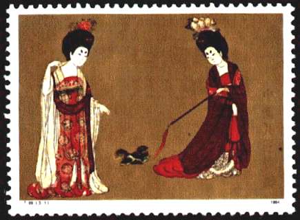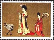 There are three stamps in a set. Stamp 3-1 depicts two noble ladies