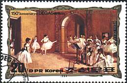 There is only one thing that interests man, it's man. Blaise Pascal. Dance is defined as the movement of the body in a rhythmic way, usually to music and within a given space, for the purpose of expressing an idea or emotion, releasing energy, or simply taking delight in the movement itself. Dance is a powerful impulse, but the art of dance is that impulse channeled by skillful performers into something that becomes intensely expressive and that may delight spectators who feel no wish to dance themselves. These two concepts of the art of dance - dance as a powerful impulse and dance as a skillfully choreographed art practiced largely by a professional few - are the two most important connecting ideas running through any consideration of the subject. In dance, the connection between the two concepts is stronger than in some other arts, and neither can exist without the other. Tip: Point on the stamps with the mouse index for more information about the works of art displayed and about the stamps. |